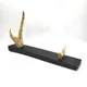 Корпус ножа выполнен из благородной дамасской стали, обработанной вручную. Подставка изготовлена из натурального рога, усиленного латунью. Покрытие изделия – золото высшей пробы, придает ножу сияние и роскошь.